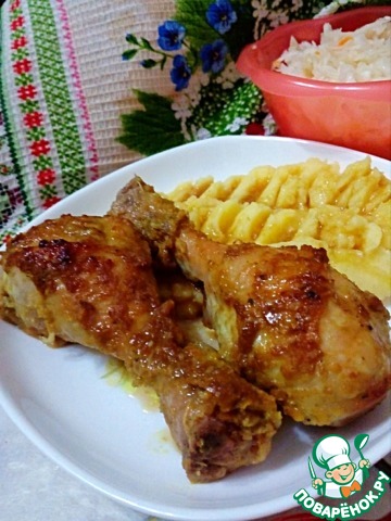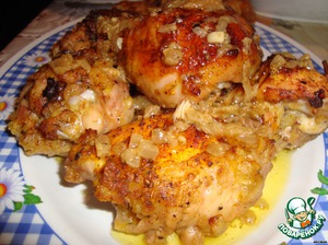 Это блюдо названо так в честь повара, создавшего его, - Полины Ивановны Чепишко. Сразу оговорюсь, у меня были не цыплята, а двухкилограммовая тeтка-курица. Рецепт взяла из кулинарной книги за 1993 год. Количества ингредиентов указано не было (наверное рассчитано на профи поваров). Посему пришлось чужую идею подгонять под себя. Но главное ведь результат! А в результате курочка мягкая, нежная, с легкой сладковатостью от лука и приятным ароматом чеснока.