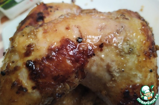 3-4 часа мы ждать конечно не могли. Моей курке посчастливилось пролежать в маринаде 40 мин. Дальше, если по оригиналу рецепта готовить, курицу пожарить на сковороде и запечь в духовке. Но и здесь моя курка пролетела. Она отправилась сразу в духовку.