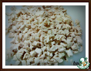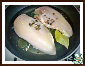 Филе я отварила в небольшом (1,5 ст.) количестве воды с добавлением специй (лаврушка и душистый перец).
