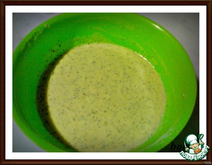 Из муки, яиц, разрыхлителя, соды, соли, укропа и йогурта замешиваем тесто, по густоте как на оладьи.