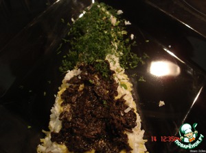 далее маслинки, тертые на терке, и опять зелень