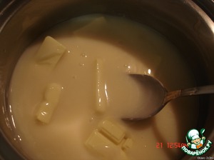 снять с огня, добавить белый шоколад 180 гр, хорошо перемешать,