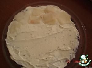 сверху укладываем тонко порезанные груши в 2-3 слоя -