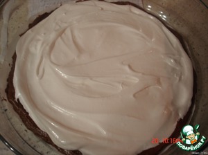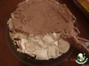 сверху корж с безе, его промазываем кремом с темным шоколадом,