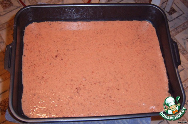 Полученную массу вылить на форму тонким слоем.