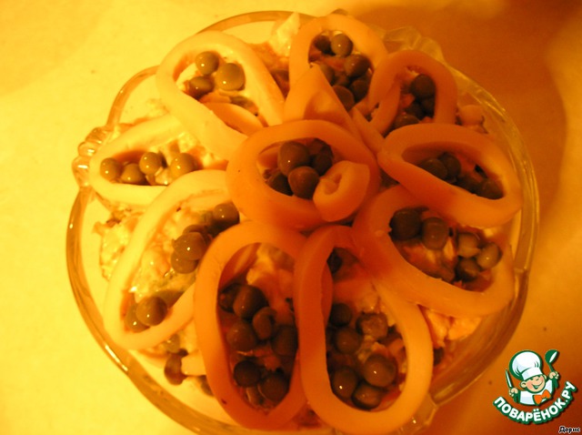 Сeмгочка, кальмарики и приятная кислиночка... Остались только фото. А какой был салат!
