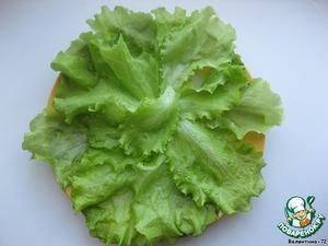 Листья салата тщательно ополоснуть и нарезать тонкими полосками