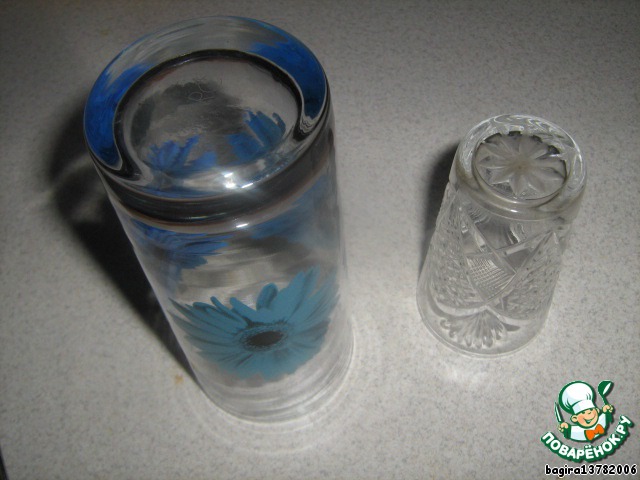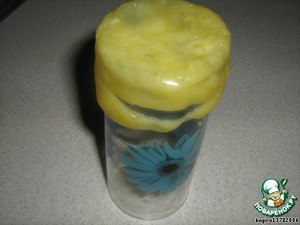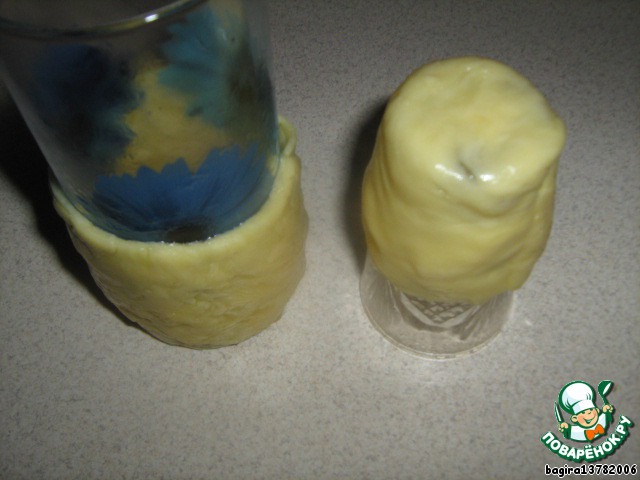 Аналогичную процедуру проделываем еще раз - для вазы. Только сыр выкладываем в виде круга. Покрываем сыром рюмку вместе с дном.