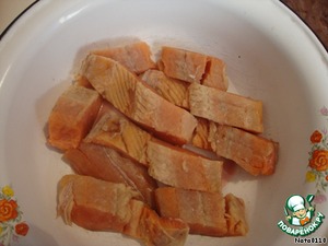• Филе нарезаем порционными кусочками, посыпаем специями.