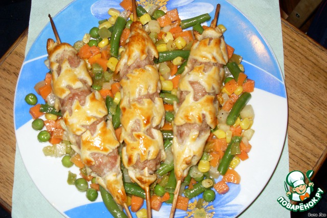 Этому названию есть оправдание. Нафаршированный – потому что из фарша, в Мексике – на гарнир овощи «мексиканская смесь». А турист-?.. Вы не замечали как едут наши за границу. Они тянут все самое дорогое, а европейцы – то что удобно. Вот и здесь, вроде простые котлеты, но разодетые. Не судите строго это мое первое блюдо на поваренке и делала его впервые.