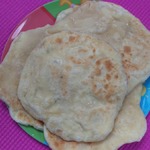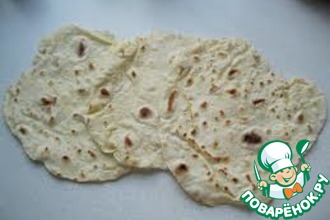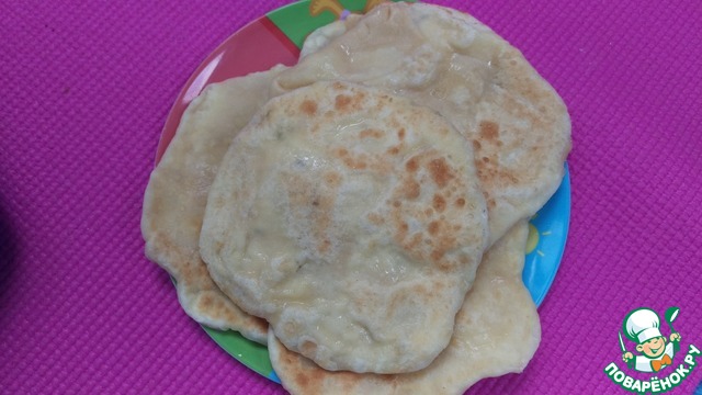 Далее берется кусочек теста, который разминается пальцами так, чтобы в него можно было положить шарик с начинкой. Начинка оборачивается тестом также в форме шара. Затем скалкой все это раскатываем, как блин, толщиной в 3-4 мм. Выпекаем на сковороде с двух сторон до цвета лаваша.