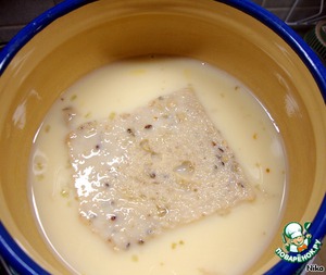 Булку с обоих сторон обмакнуть в молоке (булка с семечками).