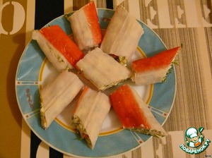 То, что в крабовые палочки можно завернуть, кучу всяких вкусностей ни для кого не секрет. Я лишь предлагаю свой вариант начинки.