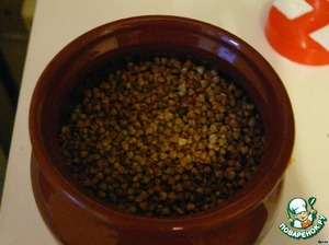 Горшочком отмеряем крупу. Насыпаем чуть больше половины и промываем, потом мы ее равномерно распределим по трем горшочкам.