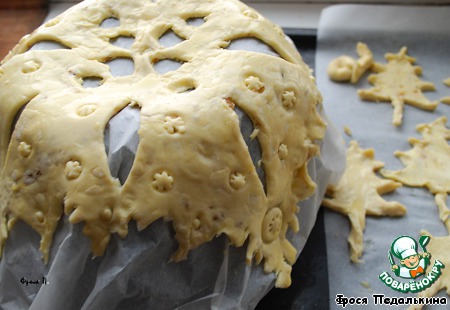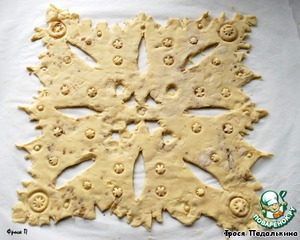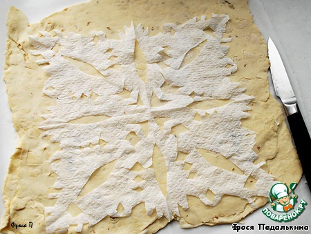 Делаем трафарет снежинки, аккуратно вырезаем ее из теста.