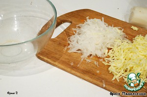 Сыр и дайкон (по желанию) натираем на крупной терке.