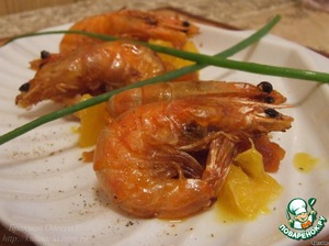 Рецепт «Креветки на гриле в апельсиновом соусе с чатни из персиков»: