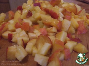 добавляем персики, натертый на мелкой терке имбирь и вливаем уксус.