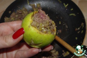 • Яблоки начиняем полученным фаршем и запекаем в духовке или в микроволновке под грилем (без микроволн). Запекать нужно до мягкости яблок (по времени не скажу, сама ориентировалась "на глаз"). В духовке - при температуре 170 градусов.