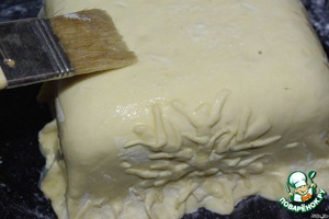 Смазываем яйцом и делаем проколы вилкой или ножом по всей поверхности теста.