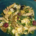 Делала этот салат на новый год, всем очень понравилось, особенно то, что там совсем нет майонеза. Вместо оливок, я положила маслины, т.к. была открыта баночка с маслинами. Получилось тоже вкусно.