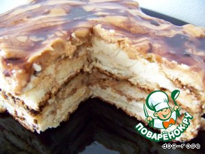 И выливаем сверху. Затем ставим торт в холодильник, желательно на ночь. Утром достаем, завариваем кофе и наслаждаемся. Приятного аппетита! |