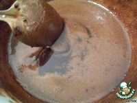 Дальше для украшения у меня была сварена глазурь: какао-порошок, сахар, молоко перемешиваем, ставим на огонь, пару минут варим до загустения. |