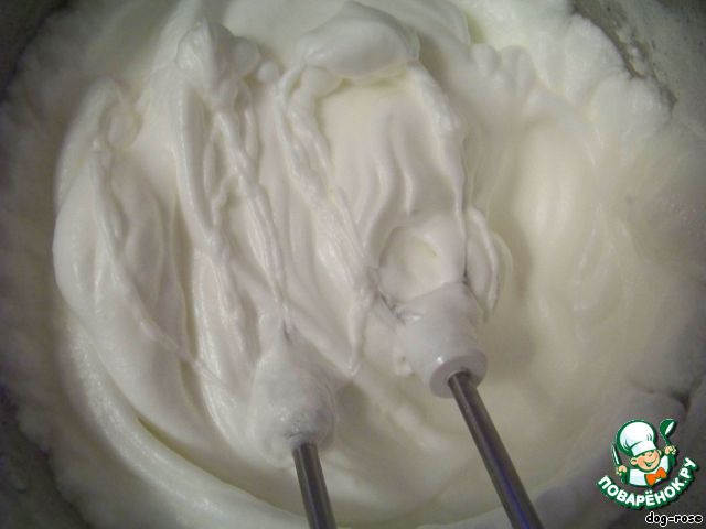 Отдельно взбиваем в пену белки (они должны быть хорошо охлаждены). |