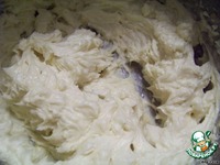 затем понемногу добавляем остывшую яично-молочную смесь и взбиваем на высокой скорости до получения однородного воздушного крема. |