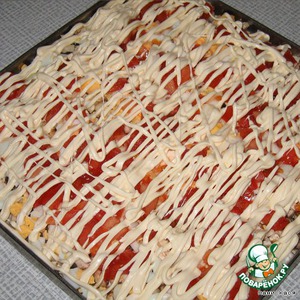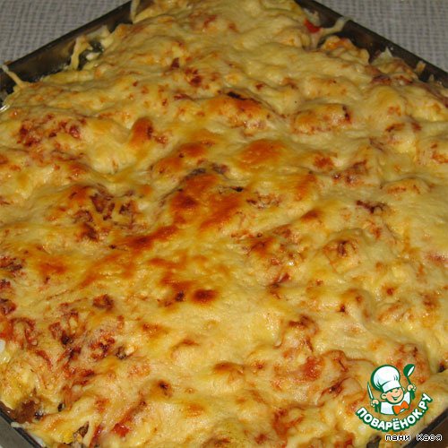 Засыпаем тертым сыром и ставим на 20-25 минут в разогретую духовку.