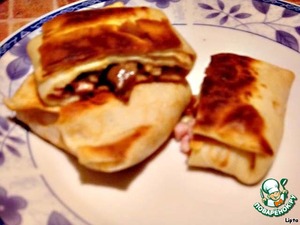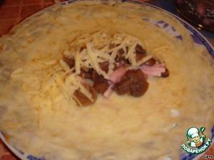 Рецепт «Блинчики с сыром, грибами и ветчиной»: