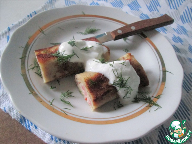 Лучшие блинчики, в которые будем заворачивать начинку, это тонкие блинчики. Как паутинка =).