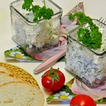 Это любимый салат моего сына. Его можно есть просто так, а можно выкладывать на половинки болгарских перцев, заворачивать в листья салата, намазывать на хлеб.
