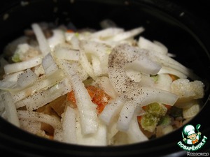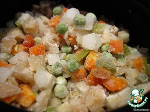 - Овощи (мороженые - цветная капуста, лук, перец сладкий, морковь, горошек) — 300 г