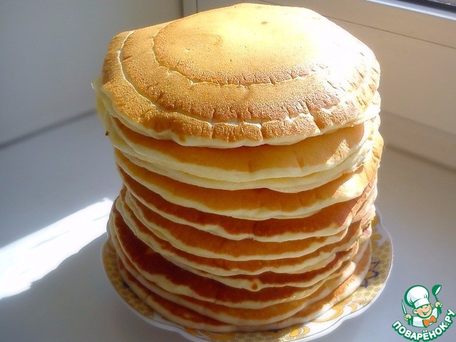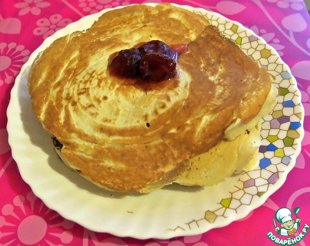 Стопкой укладываем 2-3 блина. Сверху выкладываем банан.