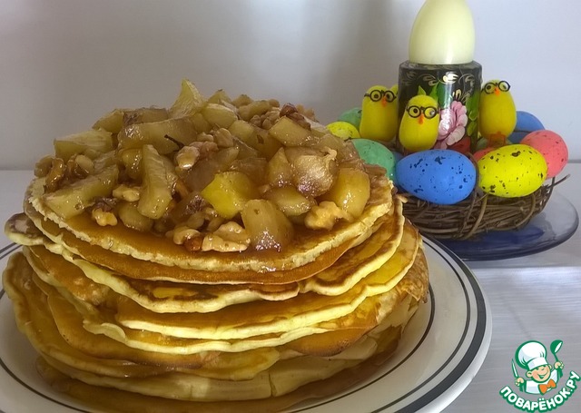 Это вкусное блюдо открыл для меня один хороший человек, который приехал из Америки покорять Сибирь. И вот, спустя несколько лет захотелось мне вновь насладиться этим вкуснейшим десертом. Подбирала нужное количество ингредиентов и... получилось!!! Нежный блинчик, тающий во рту, в сочетании со свежим бананом, хрустящими орешками и сладким мeдом. Правда, в том варианте был не мeд, а кленовый сироп (невероятный запах и вкус, кто пробовал - тот поймeт). Пробуйте!