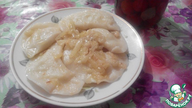 [+5]Лук в начинку не добавляла, но готовые вареники сверху сдобрила тушеным в сливочном масле луком.