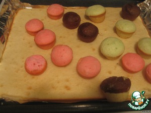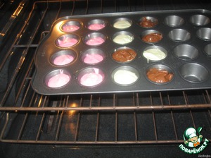 Оставшееся тесто подкрашиваем, заполняем формочки и отправляем в духовку.