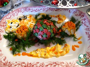 Получается вот такая порционная закуска в виде яркого елочного украшения