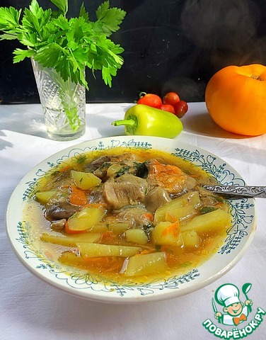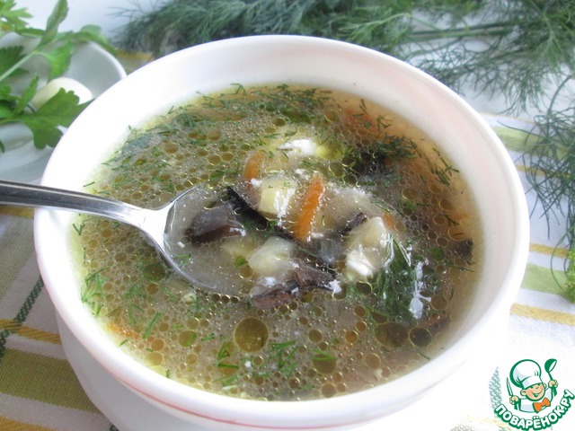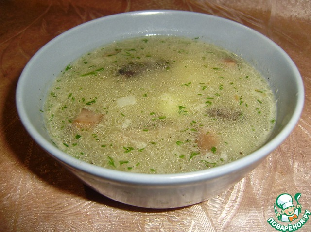 Когда я спросила моего Благодарного Кушателя (по совместительству мужа), какой же рецепт мне предложить поварятам, он сразу ответил - грибной супчик. Суп, действительно, очень вкусный и готовится быстро. Сразу извиняюсь, если такой уже есть. :)