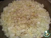 Лук нарезать кубиками, обжарить в растительном масле до легкого изменения цвета. Посолить, поперчить. Сыр натереть на крупной терке. |