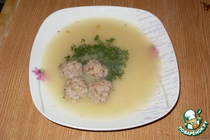 Тем временем в бульон добавляем специи, лавровый лист и наши фрикадельки.