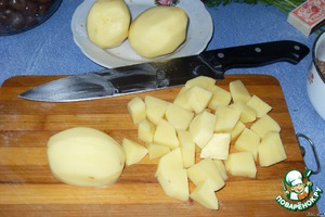 Чистим и режем картофель кубиком, заливаем водой, ставим на огонь,
