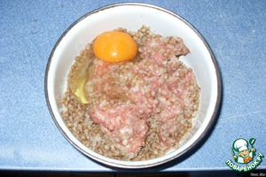Фарш смешиваем с гречневой кашей и яйцом, солим. Формируем фрикадельки.