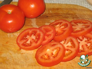 Помидорки средней величины режем тонкими кольцами.