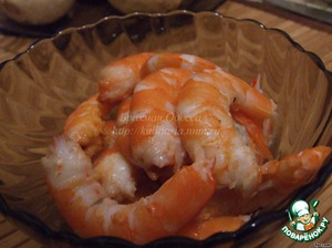креветки чищенные обжариваем буквально минуту,вынимаем.Не пережаривать,ибо буду резиновые.