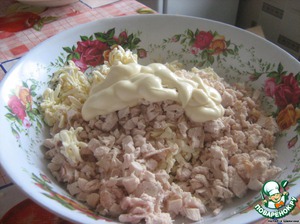 Вкусная, привычная, но необычно оформленная закуска из сыра и курицы.