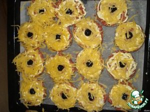 Духовку разогреть до температуры 220 градусов (около 5 мин), затем сделать огонь меньше и поставить противень с закуской в духовку.