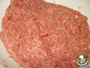 В первую очередь приготовим фарш. Я брала свиной вперемешку с говяжьим фаршем.