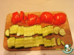 огурцы и помидоры нарезать достаточно крупно